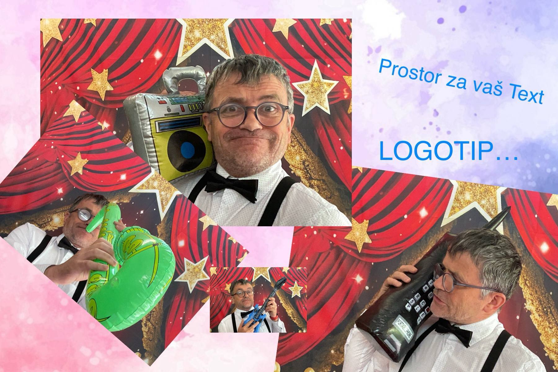 Na fotografijo lahko dodamo ozadje, logotipe, slogane, png slike, tekst....